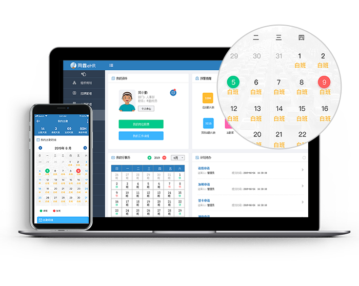 請假、出差、加班、調休等考勤實現流程審批。[+詳細介紹]